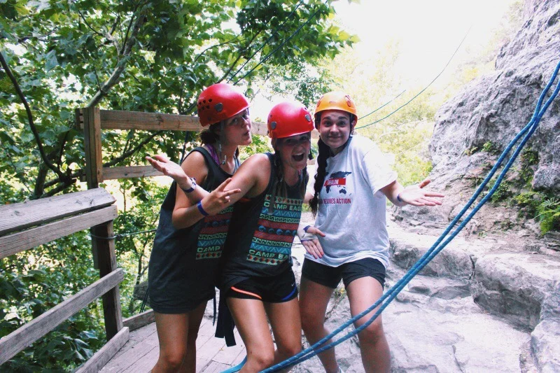 We also got to lead groups through activities. There was an intimidating sense of responsibility when I started to guide people through different high ropes elements. I remembered the pure horror that used to creep into my stomach when I would stand on the edge of the zip tower or the rappel cliff when I was camper. My body would shake, my heart would pound. But now, standing on the edge of that cliff is a place of pure joy. It was often my favorite part of the day to watch guests, who would be scared and unsure of themselves as I would instruct them, light up with excitement when they figured out the simplicity of repelling. Confidence would flood into their eyes and they would look out towards the river in awe instead of fear.